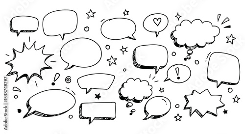 Creative collection of hand-drawn speech and thought bubbles with various shapes and designs vector illustration