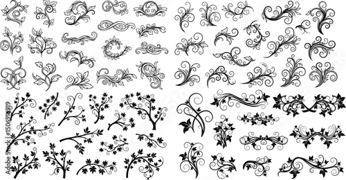 Creative collection of ornamental vine silhouettes perfect for design projects and nature-themed visuals