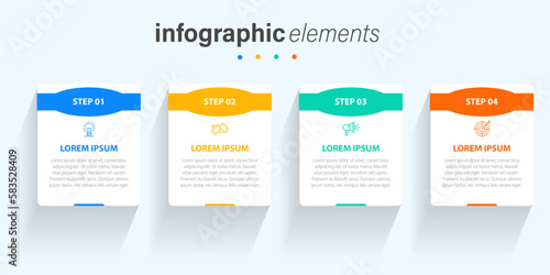 Creative concept for infographic with 4 steps. Four colorful graphic elements. Timeline design for brochure, presentation. Infographic design layout, Concept of business model with 4 successive steps.