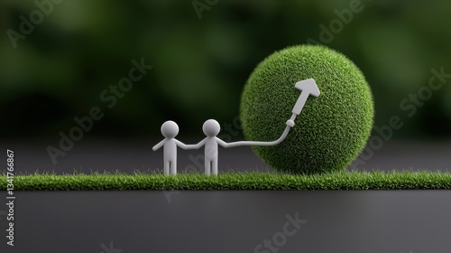 Creative depiction of teamwork promoting sustainability and growth with eco-friendly elements.