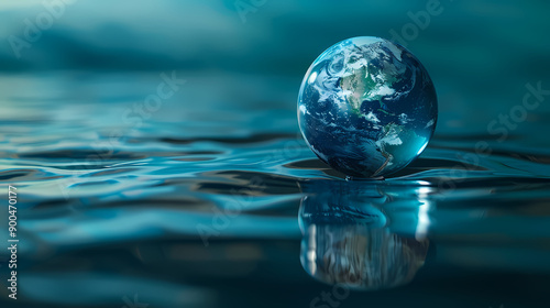 Creative design of water drop globe on blue background