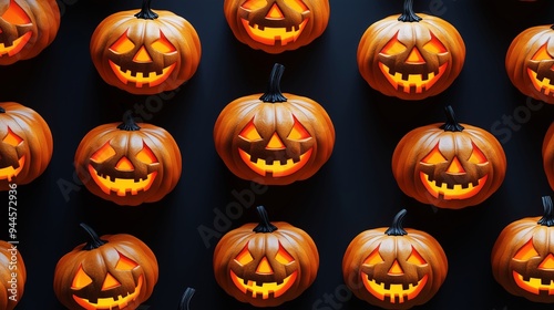 Creative Display of Spooky Smiling Pumpkins for Halloween