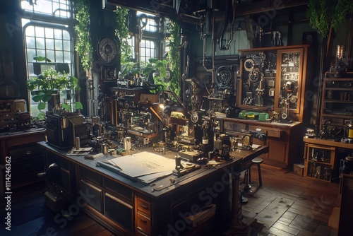 Creative engineering workshop vintage studio photography indoor close-up innovation and design exploration