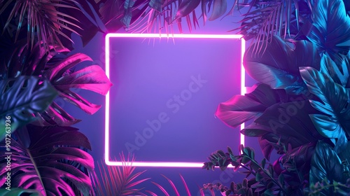 Creative fluorescent color layout made of tropical leaves