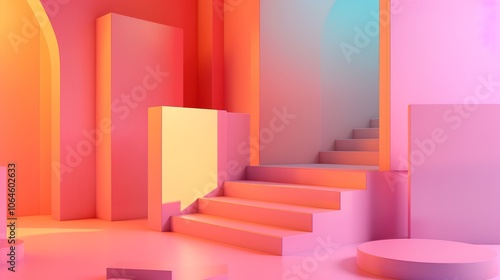 Creative Geometry Architecture Space 3D Rendering Background - an imaginative and dynamic visual. The geometric architecture creates a striking and innovative environment.