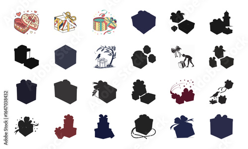Creative Gift Box and Present Icon Collection Featuring Decorative, Minimalist, and Silhouette Designs for Celebrations, Birthdays, Holidays, and Special Occasions