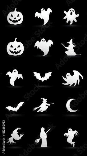 Creative Halloween decorations featuring ghosts, pumpkins, bats, and witches for festive celebrations