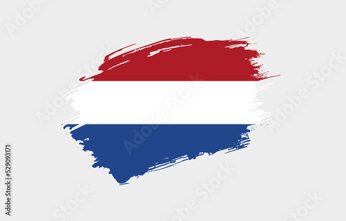Creative hand drawn grunge brushed flag of Netherlands with solid background