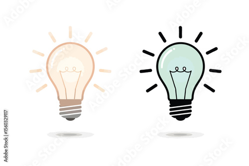 Creative idea concept using a light bulb icon with a glowing effect, flat vector minimal style