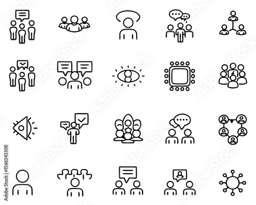 Creative illustration of a diverse group of people engaged in a lively discussion sharing ideas and communicating through speech bubbles symbolizing collaboration and teamwork in a modern setting