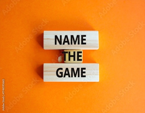 Creative image with wooden blocks spelling 'Name The Game' on an orange background