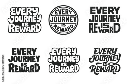 Creative Lettering Variations. Every Journey is Reward. Set lettering. harmonious lettering variations of the same emblematic concept, each with different
