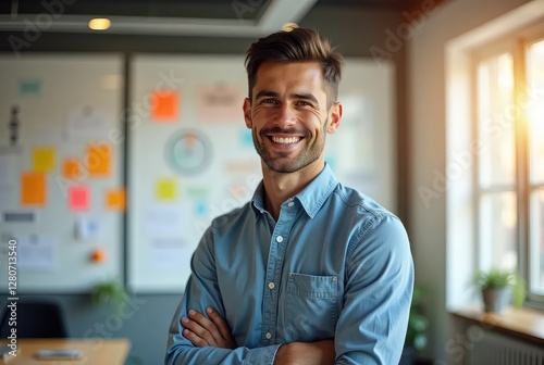 Creative Male Designer Planning Projects with Sticky Notes in a Modern Office