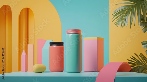 Creative packaging flat design front view brand identity theme animation Triadic Color Scheme.