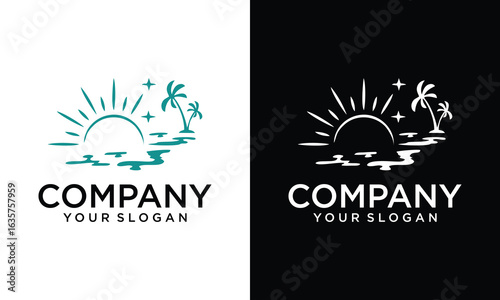 Creative palm tree logo line art vector simple minimalist illustration template icon graphic design