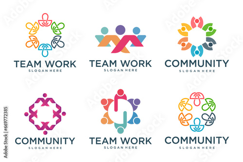 creative people logo design icon set ,symbol of community ,teamwork, family,and business group.