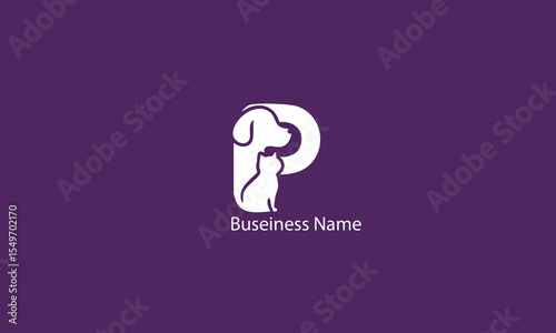 creative Pet Care Logo Incorporating a Stylized Letter P with Silhouettes of a Dog and Cat, Representing Pet-Friendly Brands and Animal Welfare Services