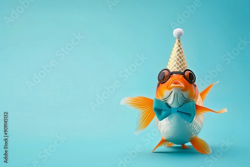 Creative photos of an animal with a hat and colored background to celebrate birthdays
