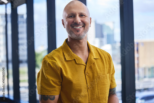Creative, portrait and smile with art director man in office for design or project management. Business, casual and confident with happy mature employee in professional workplace for startup