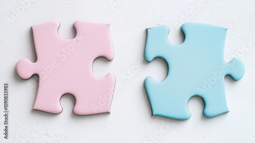 Creative puzzle pieces in soft pink and blue minimalist setting contemporary art home decor still life color harmony