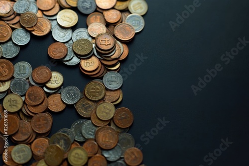 Creative shot of coins forming a dollar sign on a dark background symbolizing wealth and money business environment top view economic concept for financial growth and prosperity