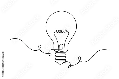 Creative Single Line Art Light Bulb Vector Minimalist Idea and Innovation Symbol Design...