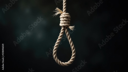Creative social concept image of a rope noose with a hangman's knot suspended against a background.