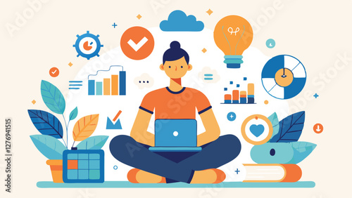 Creative Thinking Concept: Illustration of a Person with Light Bulb Ideas