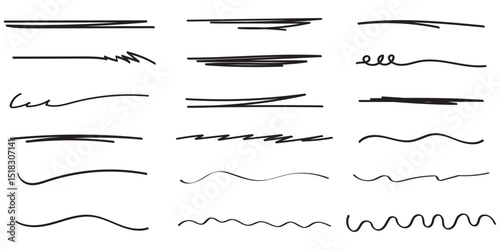Creative Underline Brush Pack – Text Highlights for Posters & Web Design . Set of hand drawn marker pen stroke line .