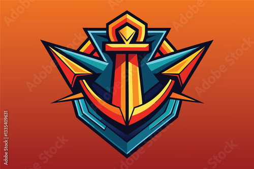 Creative vector logo design featuring a bold anchor surrounded by stylized geometric shapes and dynamic colors ideal for nautical themes