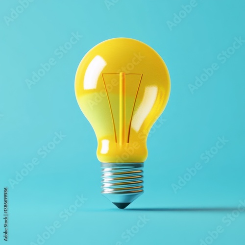 Creative Yellow Light Bulb Pencil on Cyan Blue Background Modern Concept