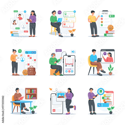 Creatively designed set of education and learning illustration in modern flat style
