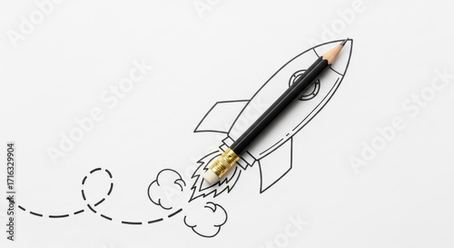 Creativity and innovation combine with imagination to launch ideas toward success and progress through bold exploration