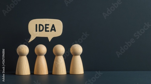 Creativity in the workplace. Creative ideas born from teamwork and company collaboration. Wooden figures with the word "IDEA" used for communication.