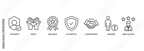 Credibility icon vector illustration banner web concept with icon of integrity, trust, reliable, authentic, commitment, regard, and reputation