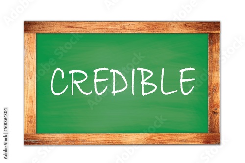 CREDIBLE text written on green school board.