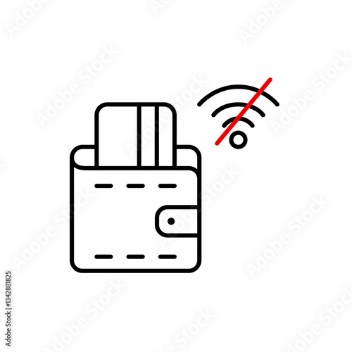 Credit card in wallet and no wi-fi symbol. Banking and payment interruption, network error. Pixel perfect, editable stroke vector icon