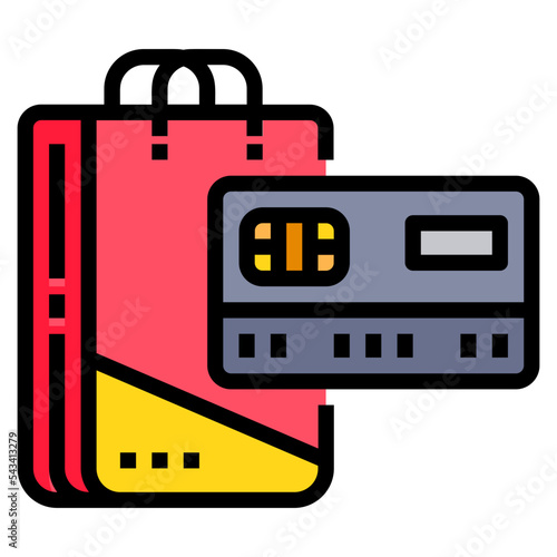 Credit Card Shopping Bag filled line color icon. Can used for digital product, presentation, UI and many more.