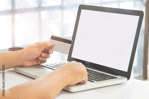Credit card use to shopping by Business women with telephone and lab top computer.