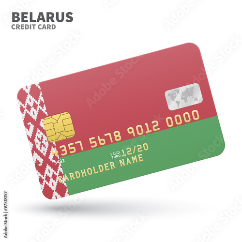 Credit card with Belarus flag background for bank, presentations and business. Isolated on white