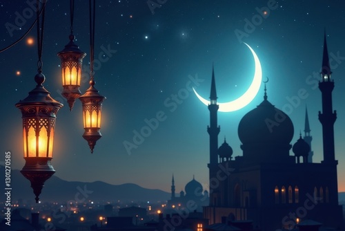 Crescent Glow: A Magical Ramadan Night with Lanterns