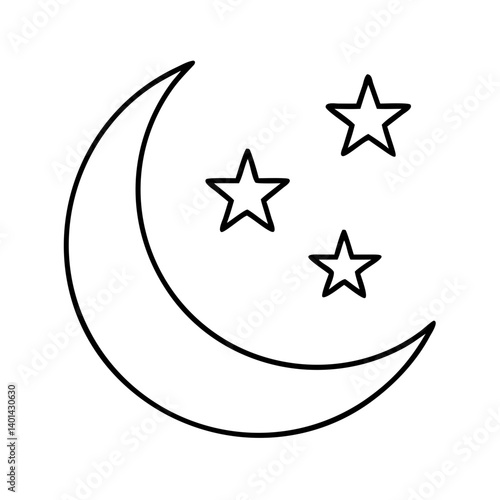 crescent with stars icon, crescent with stars line art - simple line art of crescent with stars, perfect for crescent with stars logos and icons