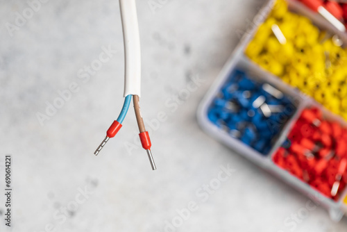 Crimped wires, close-up, working with wire