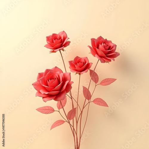 Crimson Roses Dance on Creamy Canvas