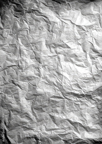 Crinkled white paper texture in grayscale