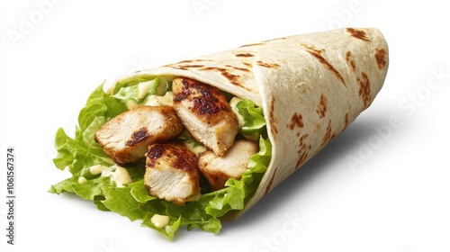 Crisp Caesar wrap with grilled chicken, fresh lettuce, and creamy dressing