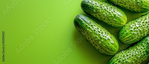 Crisp green cucumbers on a green background, emphasizing their fresh and hydrating quality