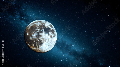 Crisp moon with craters is set against a vivid sky of stars Beautiful cosmic landscape with a celestial object