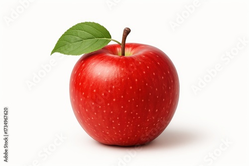 Crisp red apple isolated on white with stem and leaf high detail clipping