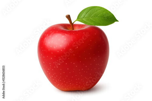 Crisp red apple with verdant leaf hanging, showcasing vibrant freshness against transparent backdrop, capturing natural fruit beauty